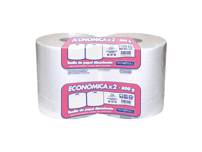 Toalla de Papel Tecnoroll Económica 2 Rollos 150 m Hoja Simple