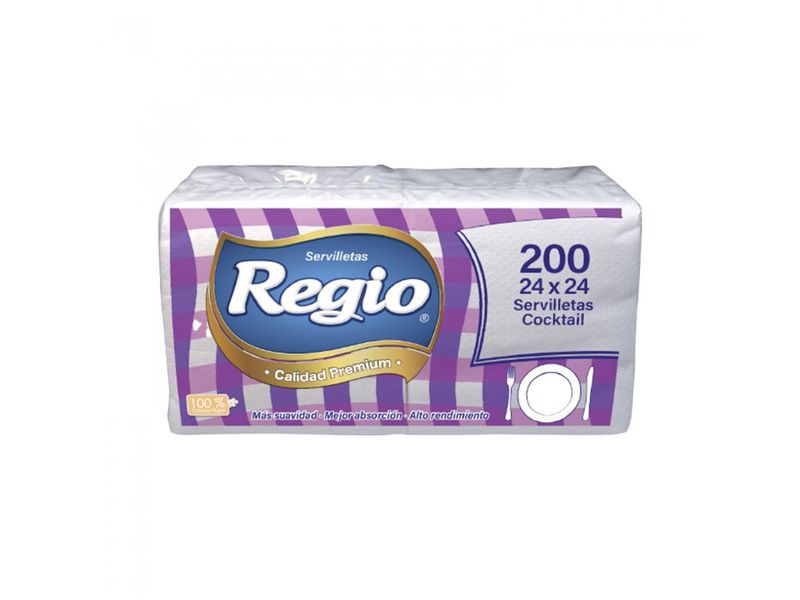 Servilleta Cocktail Regio Premium Hoja Simple 24x24 cm 200 Unidades