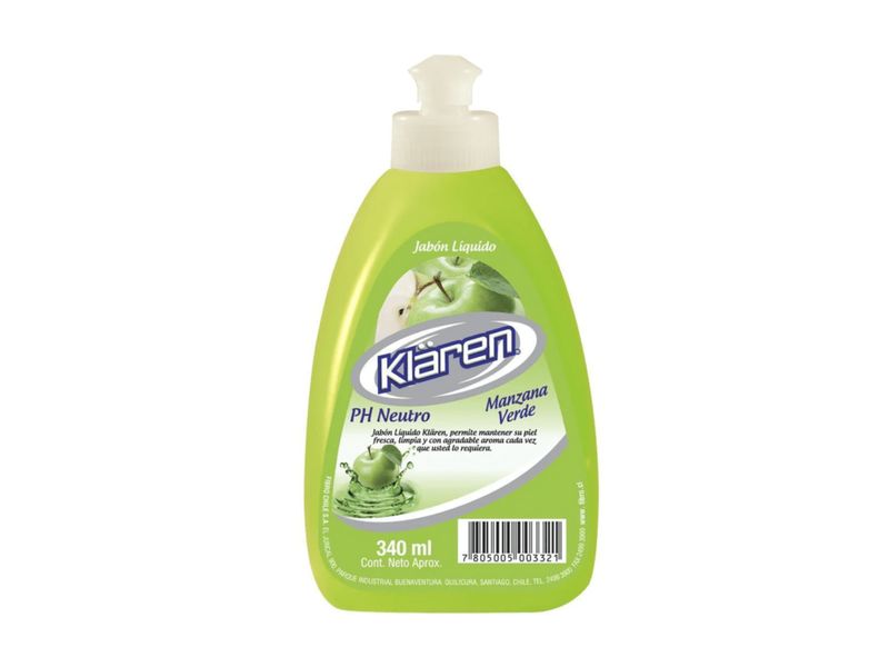 Jabón Líquido Klaren Manzana con Dosificador 340 ml