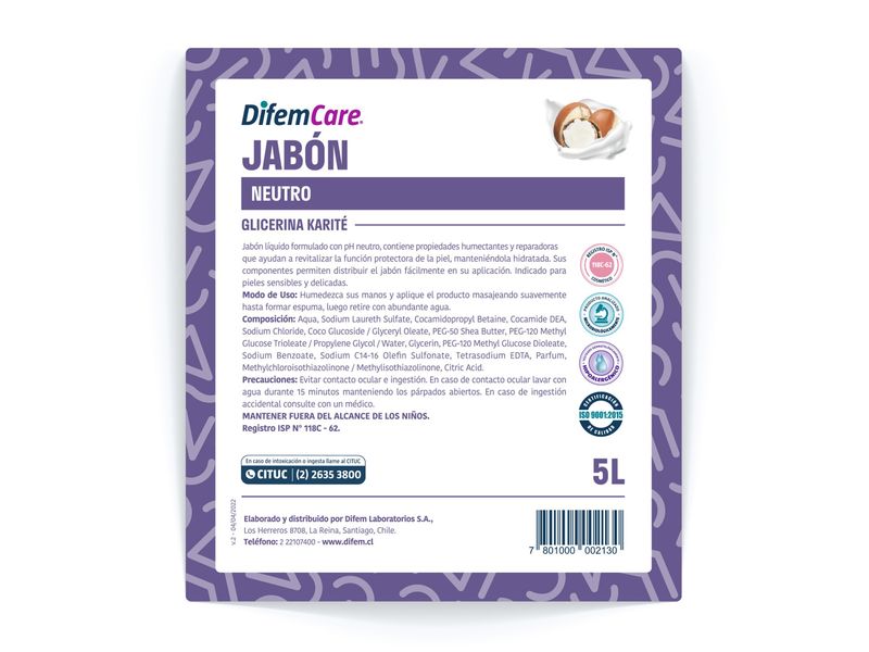Jabón Líquido Difem Care Neutro 5 L